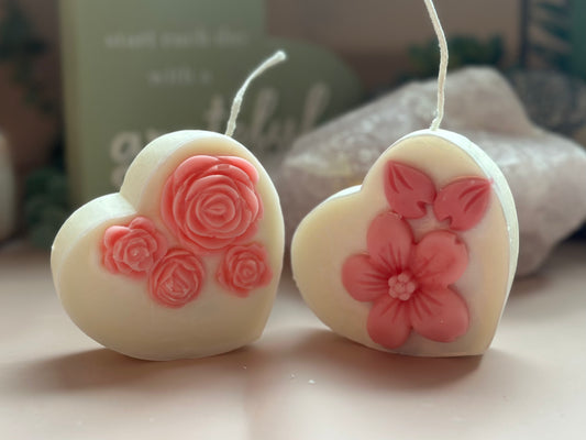 Valentines Heart Candle, 2 "I Love You" Candle/Floral Heart Candle, Home Decor, Love Candle, White Beeswax Candle