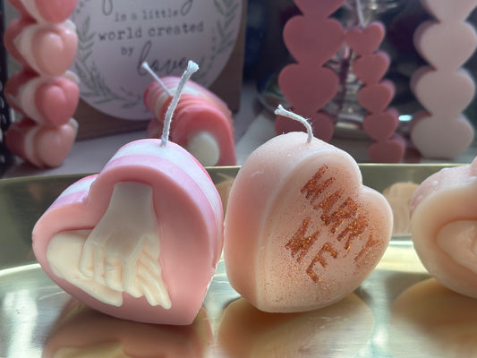Valentines Heart Candle, 2 "Marry Me" Candle/Holding Hands Heart Candle, Home Decor, Love Candle, White Beeswax Candle
