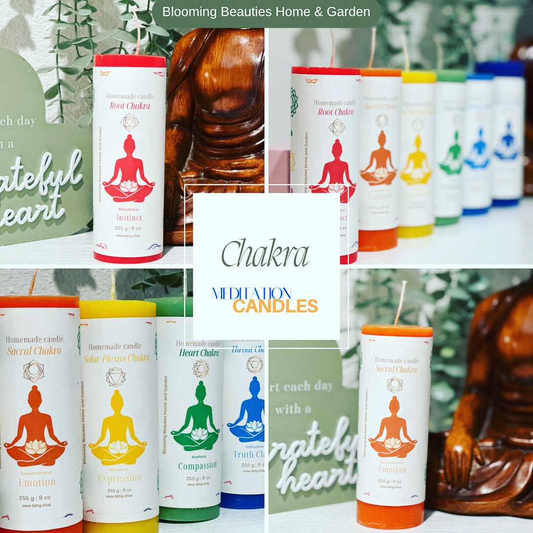 Each Chakra Candle is scented with a blend of essential oils that's related to each specific chakra.